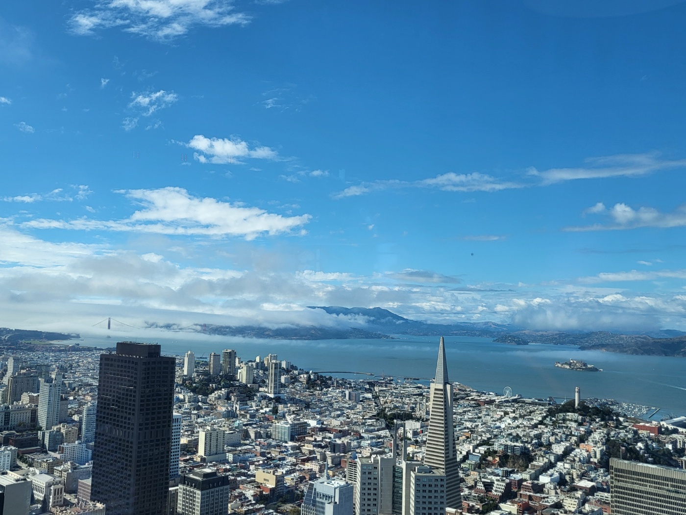 61층으로 올라가면 가장 먼저 ‘Ohana floor’라는 글자가 보이고, 창밖을 보면 자연스레 "우와!" 소리가 나와요. 금문교, 알카트라즈, 샌프란시스코 전경이 한눈에 펼쳐집니다.
