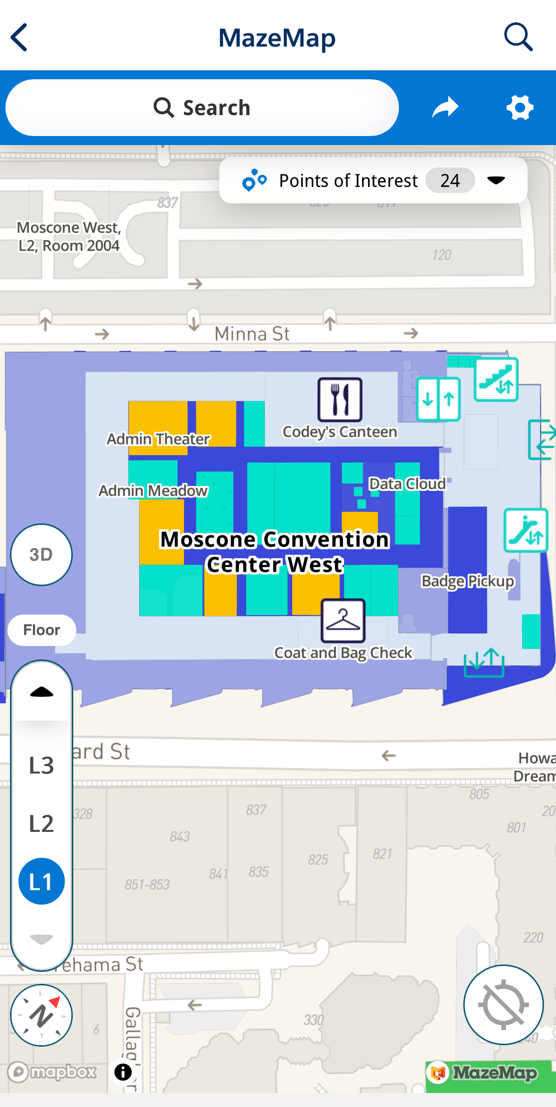 첫번째 날은 배지를 받을 수 있는 Moscone West를 소개하겠습니다!