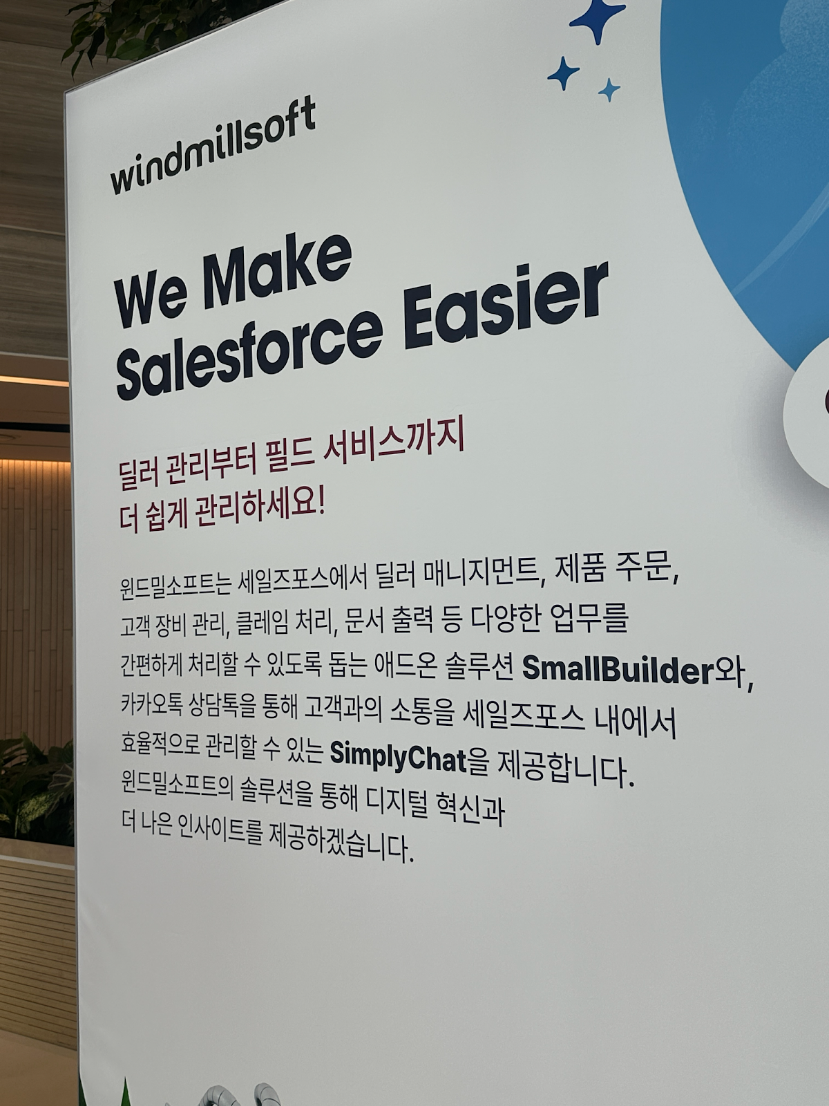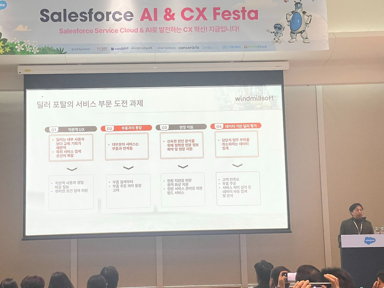 지난 11월 5일, 잠실 롯데타워에서 열린 세일즈포스 AI & CX Festa에서 윈드밀소프트는 통합 솔루션 사례를 소개하기 위해 스폰서로 참여했습니다.